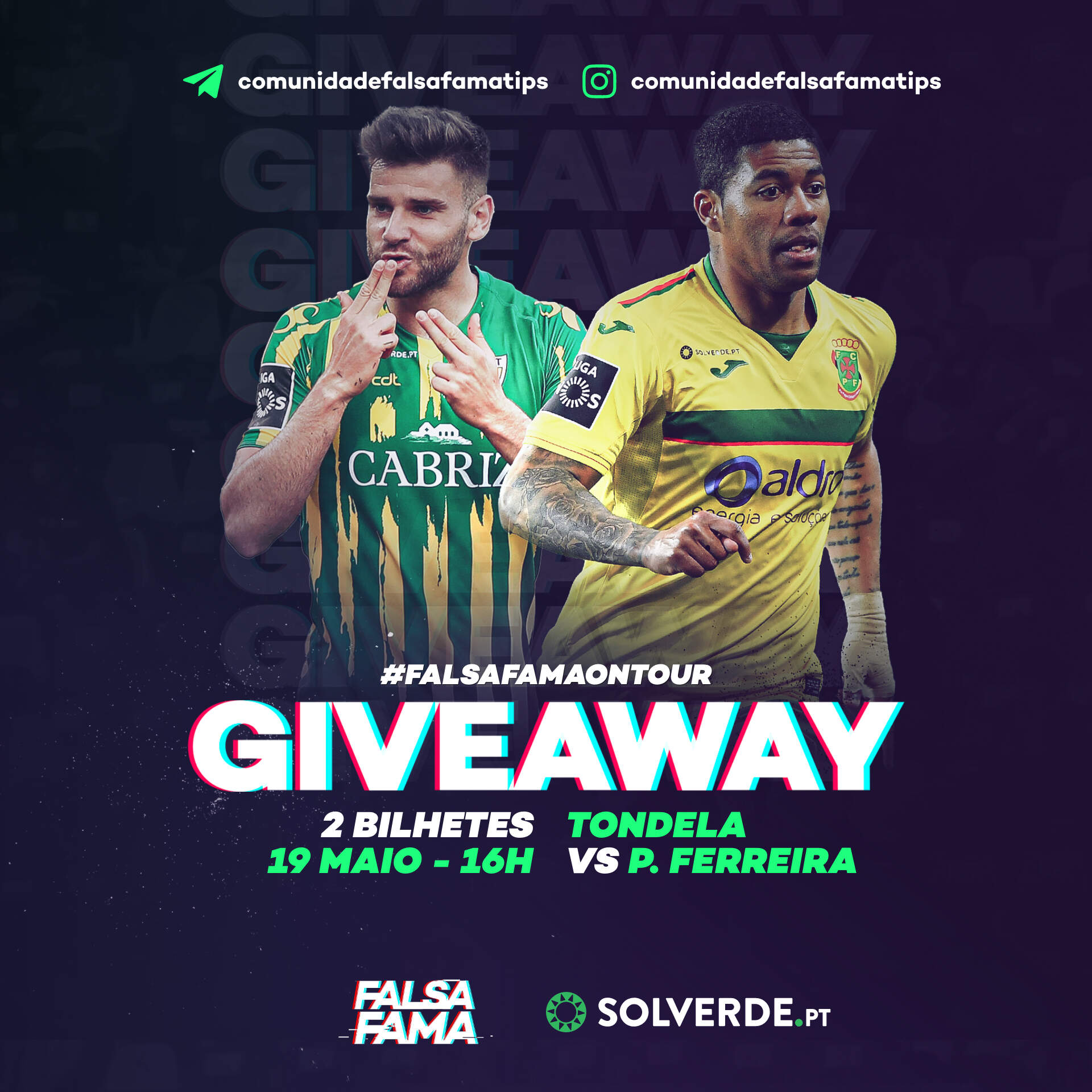Giveaway #FalsaFamaOnTour Entra no Telegram e vê as condições para ganhar 2 bilhetes para o jogo Santa Clara vs Portimonense.